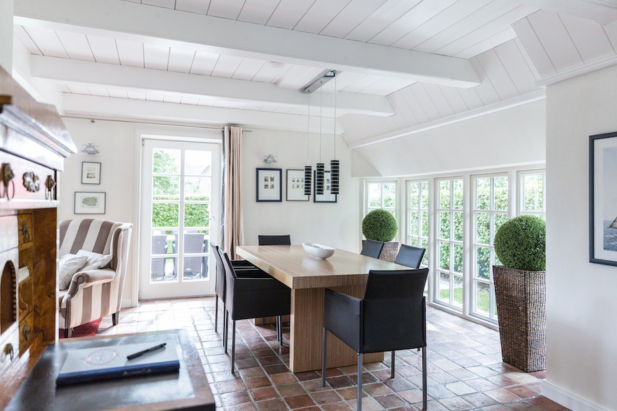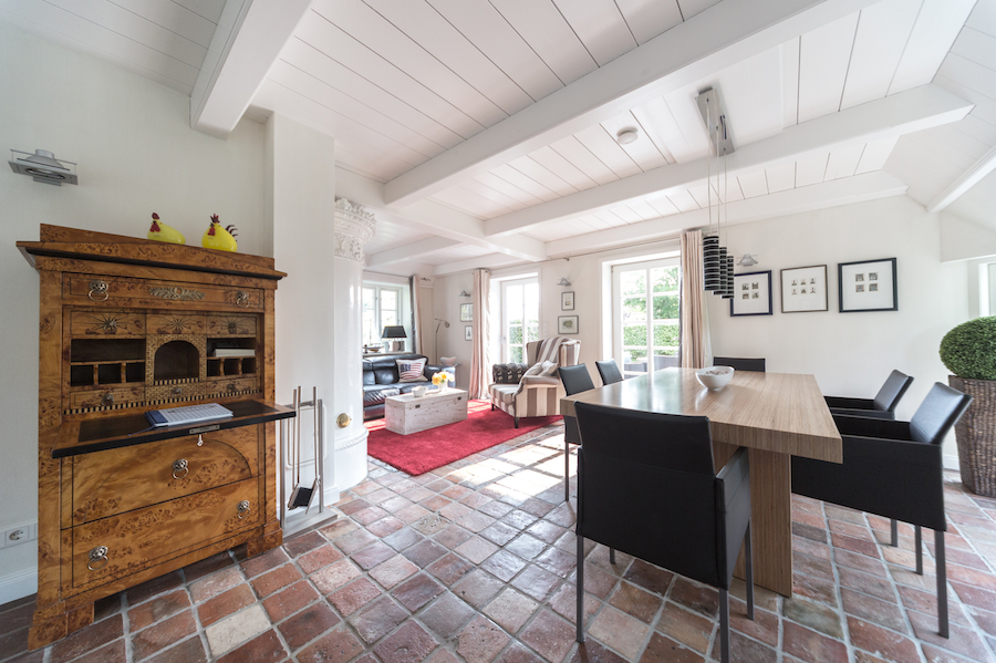 Machen Sie es sich in unserem hochmodern ausgestatteten, 2010 erbauten nordfriesischen Ferienhaus mit nostalgischem Flair gemütlich. Im offen gestalteten, lichtdurchfluteten Wohn- und Essbereich verströmt der 120 Jahre alte schwedische Zylinderofen wohlige Wärme. Die maßgefertigten hellen Einbaumöbel strahlen wohnliche Behaglichkeit aus. Bodenlange nostalgische Sprossenfenster und Terrassentüren lassen viel Licht in den Raum.