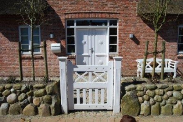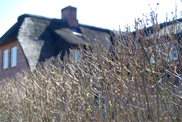 Das Grundstück des „Auster Hüs“ ist umgeben vom Friesenwall mit einem niedrigen Busch aus Heckenrosen, die im Sommer zauberhaft blühen. Ein PKW-Stellplatz befindet sich direkt am Ferienhaus.
